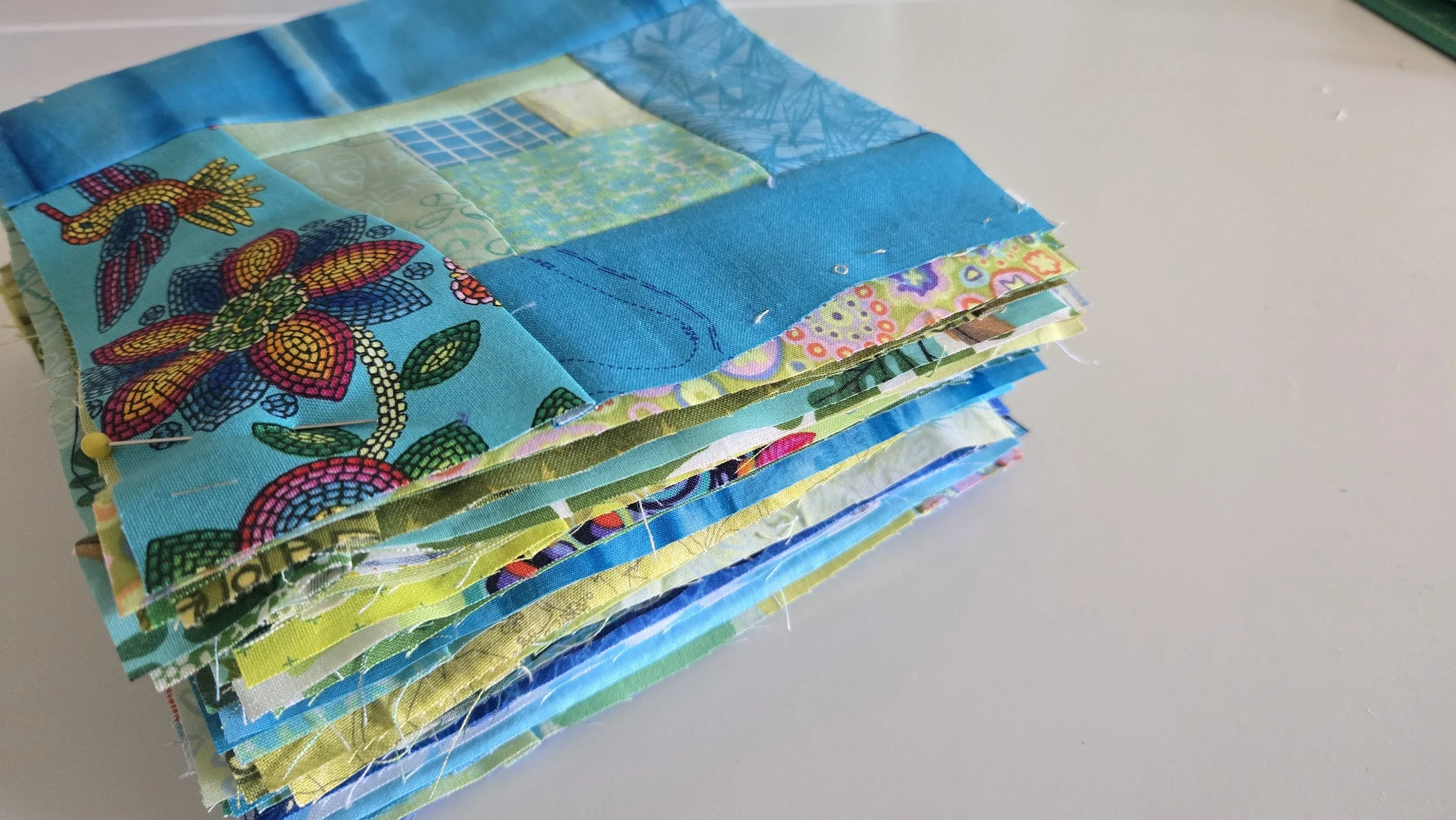 My strips bin got out of hand a few months back. Despite me finishing a quilt with nothing but strips it was such a mess, and so full, that I couldn’t close it. I come from the school of thought that if you run out of storage you don’t need more storage, you need less stuff! So the first step was to empty and sort it. I don’t normally go by colour with the strips - I’ve made many, many projects with an anything goes strategy - but I felt the need to this time. Just taking the time to untangle and sort meant I could close the bin. But, as usually happens, I got inspired by seeing all my scraps this way. Only a few days later I was teaching a class on scraps and pulled out the bin so I could demonstrate some concepts and techniques. My teaching samples don’t always have to become an actual quilt. This time, though?